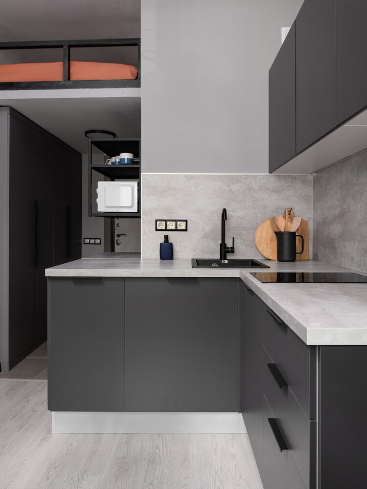Фотография: Кухня и столовая в стиле Лофт, Современный, Эклектика, Малогабаритная квартира, Квартира, Студия, Проект дня, Москва, Кирпичный дом, до 40 метров, Варвара Гущина – фото на INMYROOM