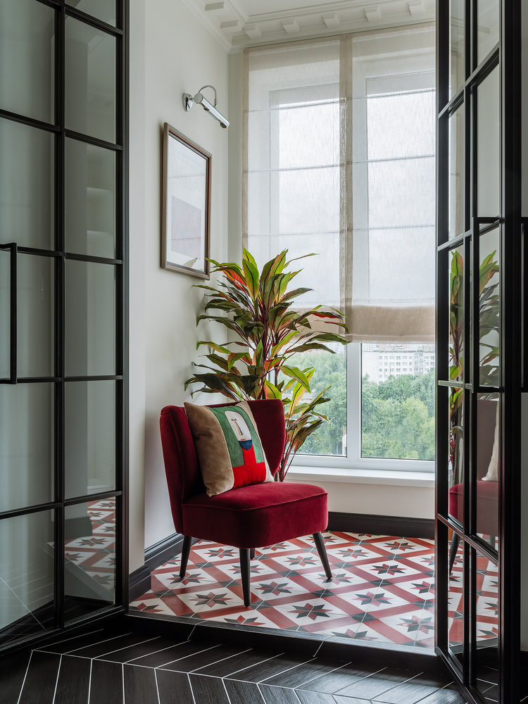 Эффектная маленькая однушка с красными акцентамиДизайн