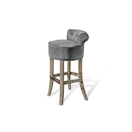 В современном мире мебели можно увидеть всевозможные варианты выполнения барных стульев. Но представленная конструкция отличается из всей плеяды стульев своим интересным дизайнерским решением. Обивка данного стула тканевая и выполнена в сером цвете, а ножки изготовлены из натурального дерева.