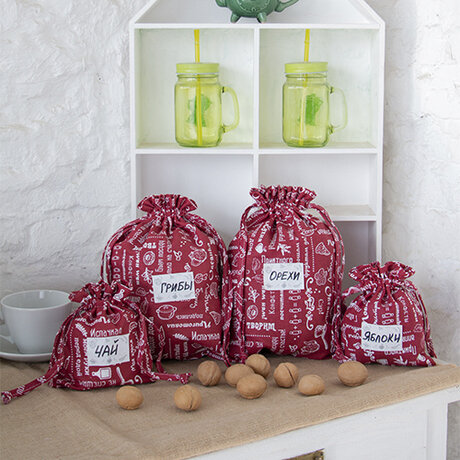 Стоимость доставки товара «Набор мешочков для хранения 'Правила кухни'(25х35 - 2 шт., 15,5х20 - 2 шт.), рогожка, 100 % хлопок, 'Вишня'» можете уточнить здесь