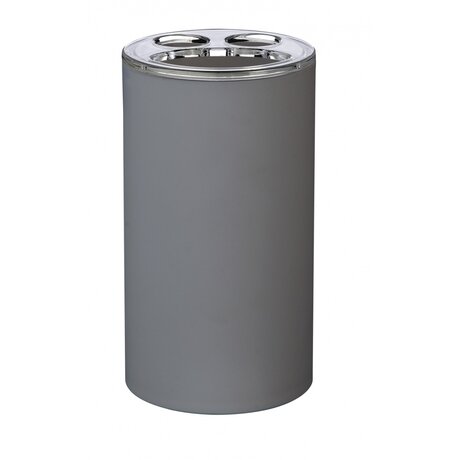 Стаканчик имеет стильную цилиндрическую форму и вмещает до 4 зубных щеток благодаря специальным отверстиям в верхней части. Серый цвет универсален и сочетается с любой цветовой гаммой ванной комнаты.
