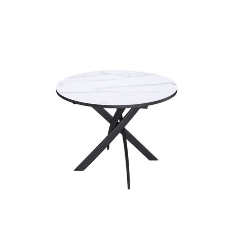 Ключевой особенностью этого стола является керамическая поверхность диаметром 90 см и долговечным, стабильным основанием. Дополняет комплект вставка на 30 см, расширяющая площадь стола..