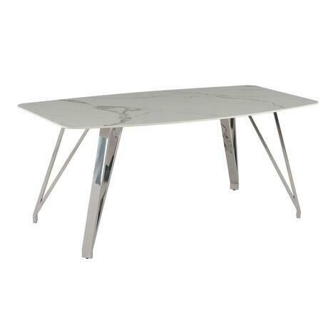 Стол обеденный. Столешница: керамогранит, цвет - белый мрамор (Калаката). Основание: нержавеющая сталь, хром180х90х76 см