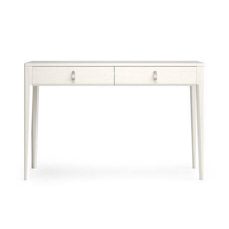 Универсальный консольный стол, который уверенно выполнит функцию косметического столика. Компактные габариты позволяют использовать стол в узком холле или небольшой комнате, а утонченный образ модели поддержан оригинальной фрезеровкой ножек и ручками из натуральной кожи, выполненными вручную мастерами The IDEA.