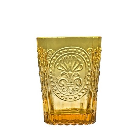 Стекло четырёхгранного стакана Vista allegre имеет цвет чистого благородного янтаря. Роскошный аксессуар декорирован орнаментом, сочетающим винтажную витиеватость и торжественную эмблемность стиля ампир.