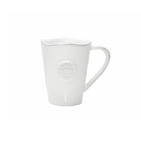 Керамическая чашка выполнена в конусообразной форме с удобной ручкой. Фигурные края изделия и небольшой объемный рисунок в виде печати придают особый шик.