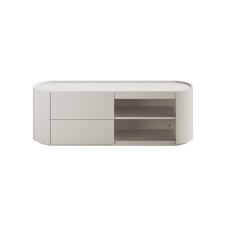 Ищете функциональное решение для зоны ТВ без громоздкой мебели? Тумба Lagom 2 в дымчато-сером цвете занимает всего 1,4 метра в длину, но вмещает всю необходимую технику и аксессуары благодаря продуманной компоновке.