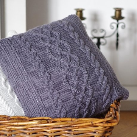 Темный и угрюмый цвет этой декоративной подушки неожиданно привнесет теплоту и уют, благодаря ручной работе и крупным вязанным орнаментам. Ее нейтральный цвет хорошо впишется в светлый, наполненный воздухом интерьер. Эта диванная подушка совсем небольшого размера, но упруга, поэтому ее будет довольно удобно подложить под спину для отдыха. Вязаная наволочка застегивается на молнию.