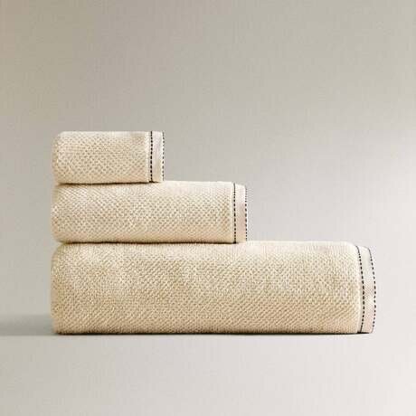 Хлопковое банное полотенце с текстурой рисовой строчки и контрастной строчкой по краю.