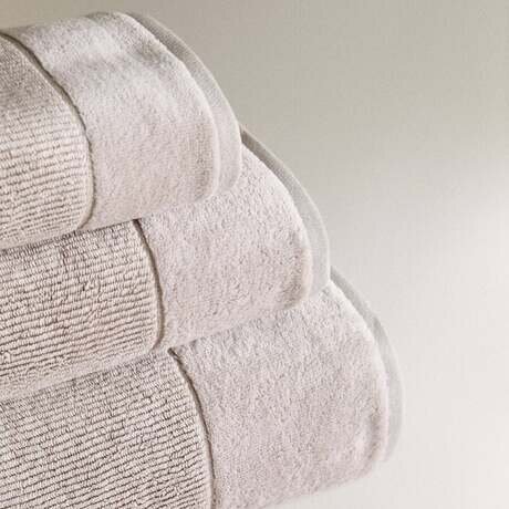 Хлопковое махровое полотенце с полосатым фактурным рисунком.