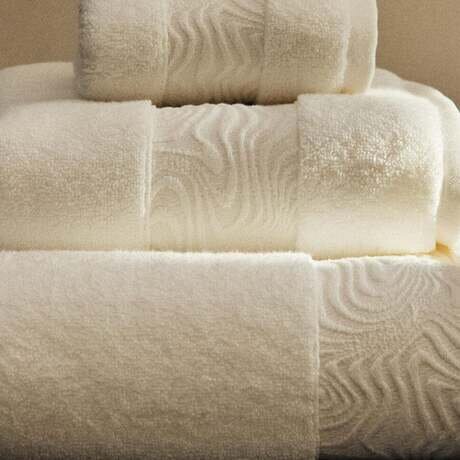 Мягкое хлопковое банное полотенце с каймой под мрамор.