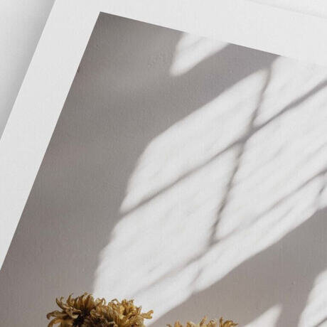 Подсолнухи в вазе красиво стоят на маленьком столике. Стена позади него красиво отражает солнечный свет из окна, придавая принту приятный вид. В вашем доме никогда не может быть слишком много красивых ботанических фотографий. Плакат «Ваза для цветов № 2» имеет встроенную белую рамку, которая элегантно обрамляет мотив.