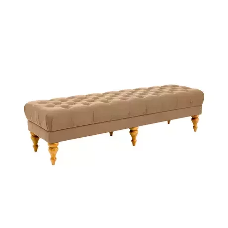 - Каретная стяжка — классический элемент, который никогда не выходит из моды - Прочный деревянный каркас — выдерживает нагрузку до 180 кг без деформации - Бежевый велюр — легко впишется в любую цветовую гамму интерьера Банкетка Jazz универсальна в использовании. Разместите её в прихожей для удобства надевания обуви, в спальне у изножья кровати или у туалетного столика. Для помещений в классическом стиле точеные деревянные ножки и изысканная каретная стяжка станут выразительным акцентом. При этом банкетка имеет компактные размеры, не загромождая пространство.Технические характеристики: