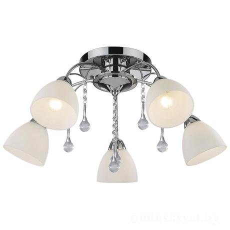 Назначение светильника: для гостиной, Стиль светильника: модерн, Тип: потолочная, Материал светильника: металл, стекло, Диаметр: 630 мм, Высота: 310 мм, Количество ламп: 5 шт., Тип лампы: накаливания, Мощность: 40 Вт, Патрон: Е14, Цвет арматуры: хром