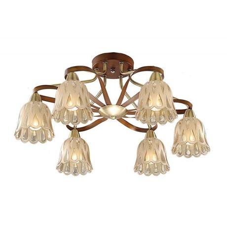 Назначение светильника: для спальни, Стиль светильника: модерн, Тип: потолочная, Материал светильника: металл, стекло, Диаметр: 540 мм, Высота: 240 мм, Количество ламп: 6 шт., Тип лампы: накаливания, Мощность: 60 Вт, Патрон: Е14, Цвет арматуры: античная бронза