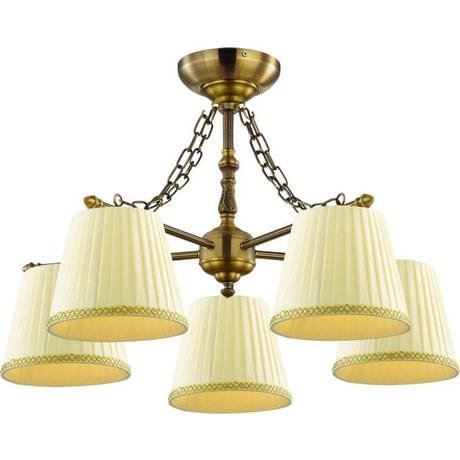 Назначение светильника: для спальни, Стиль светильника: модерн, Тип: потолочная, Материал светильника: металл, ткань, Диаметр: 670 мм, Высота: 780 мм, Количество ламп: 5 шт., Тип лампы: накаливания, Мощность: 40 Вт, Патрон: Е14, Цвет арматуры: золото/коричневый