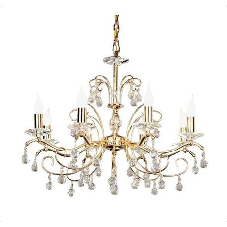 Назначение светильника: для гостиной, Стиль светильника: классика, Тип: потолочная, Материал светильника: металл, хрусталь, Диаметр: 670 мм, Высота: 540 мм, Количество ламп: 8 шт., Тип лампы: накаливания, Мощность: 60 Вт, Патрон: Е14, Цвет арматуры: золото