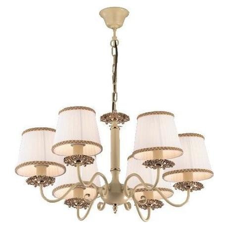 Назначение светильника: для гостиной, Стиль светильника: классика, Тип: подвесная, Материал светильника: металл, ткань, Диаметр: 660 мм, Высота: 820 мм, Количество ламп: 6 шт., Тип лампы: накаливания, Мощность: 40 Вт, Патрон: Е14, Цвет арматуры: слоновая кость