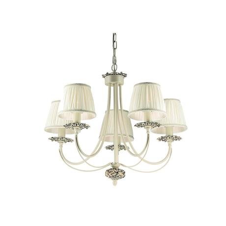 Назначение светильника: для спальни, Стиль светильника: классика, Тип: подвесная, Материал светильника: металл, гипс, ткань, Диаметр: 630 мм, Высота: 480 мм, Количество ламп: 5 шт., Тип лампы: накаливания, Мощность: 40 Вт, Патрон: Е14, Цвет арматуры: белый