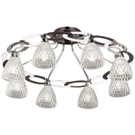 Назначение светильника: для гостиной, Стиль светильника: модерн, Тип: потолочная, Материал светильника: металл, стекло, Диаметр: 730 мм, Высота: 250 мм, Количество ламп: 8 шт., Тип лампы: накаливания, Мощность: 60 Вт, Патрон: Е14, Цвет арматуры: хром/черный