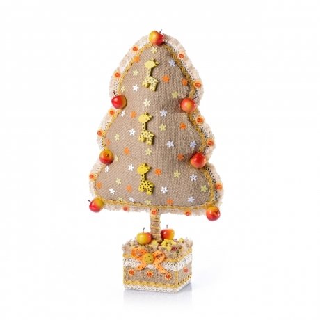 Каждое изделие изготовлено из гопоаллергенного джута и украшено очаровательной фурнитурой, которая особенно понравится самым маленьким. Елочку можно поставить на стол, подоконник или полку.