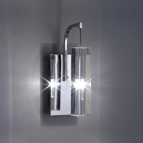 Настенный светильник из коллекции Sople на хромированной арматуре. Плафон выполнен из прозрачного фактурного стекла. Количество лампочек: 1;