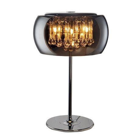 Плафон настольной лампы ARGOS выполнен из зеркального стекла. Середина декорирована подвесками из прозрачного стекла, имитирующее муранское. Основание светильника - хромированный металл. Высота лампы 145 см.