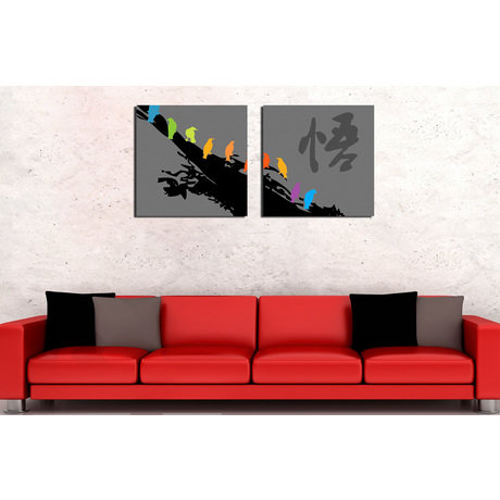 Стоимость доставки товара «Красивый диптих на холсте: Цветные галки» можете уточнить здесь