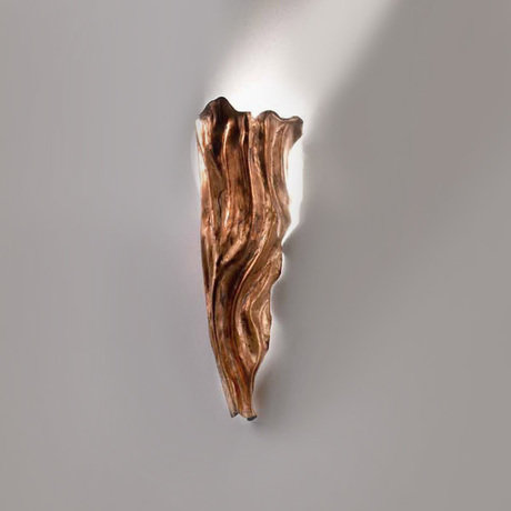Настенный светильник выполнен из кованного металла с имитацией ткани со складками. Цвет: бронзовый с оранжевыми разводами. Количество лампочек: 1; Мощность: 1 x 60 Вт; Тип лампы: Галогенная, G9