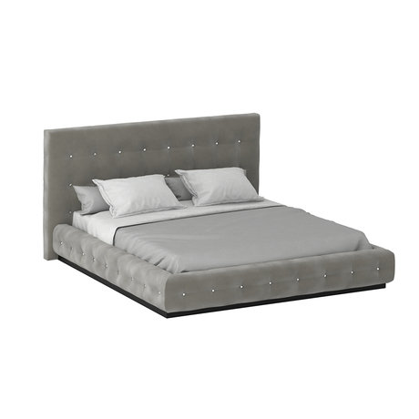 Кровать двуспальная с подъёмным механизмом и ящиком для белья. Спинка кровати и царги оформлены кристаллами Swarovski. Спальное место 160х200 см. Корректная работа подъёмного механизма пневматического типа обеспечивается при весе матраса от 25 до 40 кг.