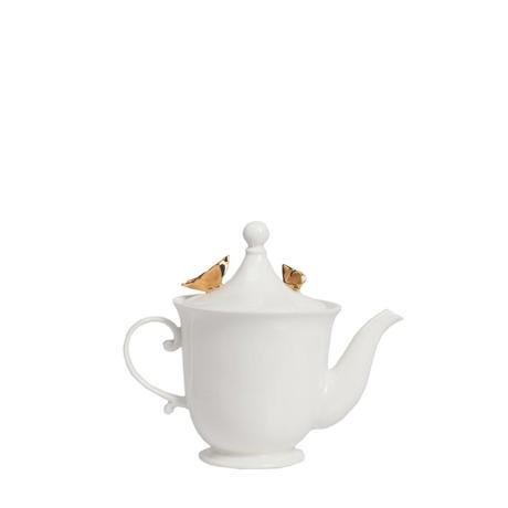 Заварной чайник Presente выполнен из керамики, в белом цвете. На белом фоне чайника живописно восседают фигурки золотых бабочек. Декор красиво согласован с формой чайника. Чайник можно приобрести отдельно, а также совместно с другими предметами коллекции.