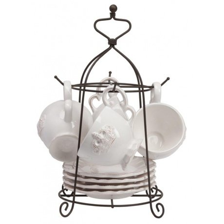 Изысканный чайный набор белоснежного цвета с французским названием Rendez-Vous украсит ваш сервированный к чаепитию стол, придав ему легкости и шарма одновременно. Такой предмет декора идеально впишется в кухню или комнату в стиле «прованс», поскольку 4 пары чашечек и блюдец, входящих в набор, изготовлены из доломита, а подставка – из нержавеющей стали.